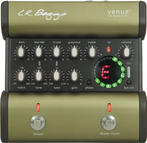 The LR Baggs Venue DI Direct Box offers a discrete acoustic guitar preamp. It combines a transformer-coupled DI output for maximum isolation, an EQ specifically tuned for acoustic guitars, a variable-boost control to complement your playing styles, and a chromatic digital tuner to help you stay in tune. Combining features from at least three stompboxes into one pro box, the LR Baggs Venue D.I. brings a new level of fidelity, confidence, and usefulness to performing acoustic musicians. The Venue D.I. is one of the most comprehensive and best-sounding tools ever to tame the surliest stage.